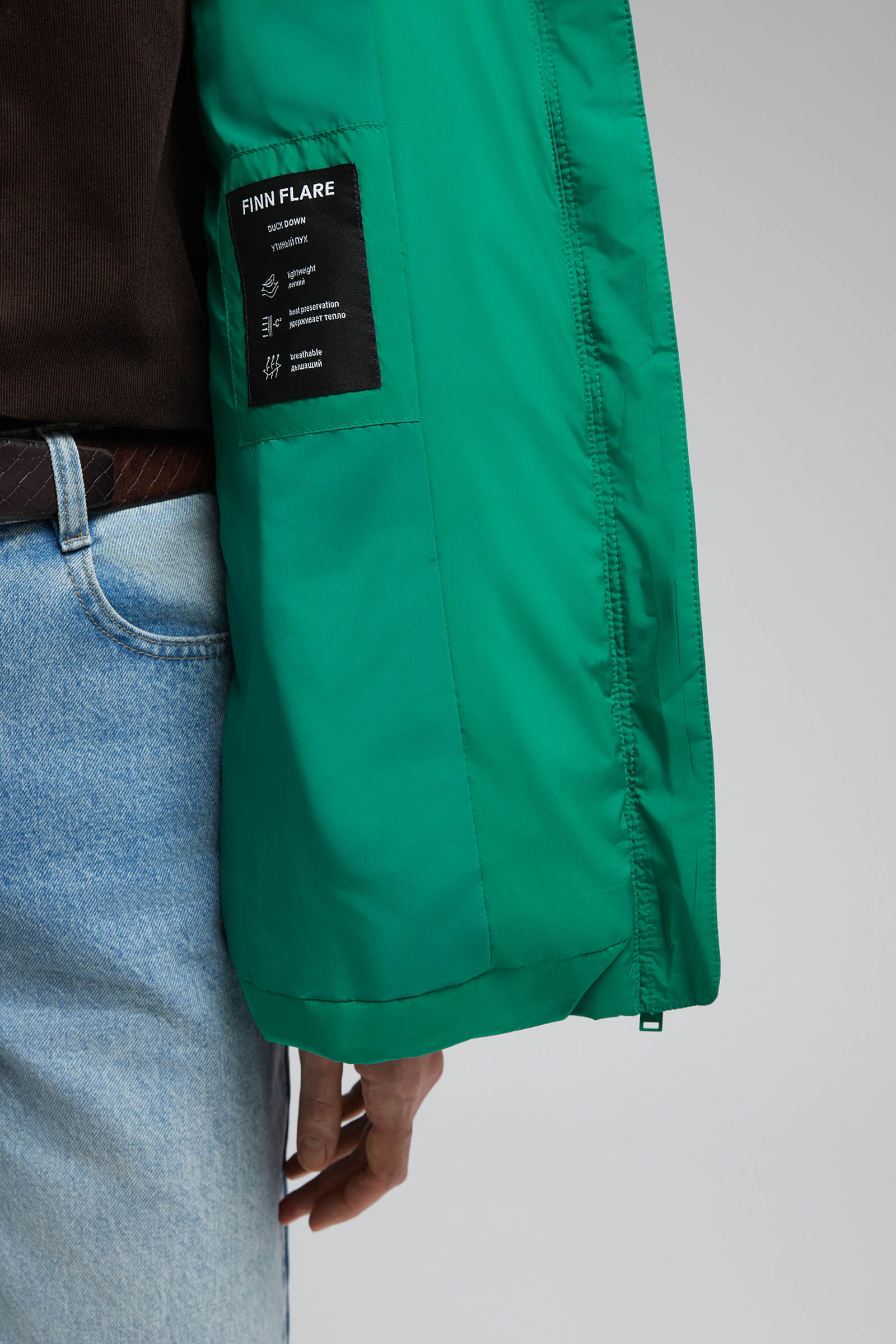 Удлиненный пуховик с натуральным пухом и термостежкой
