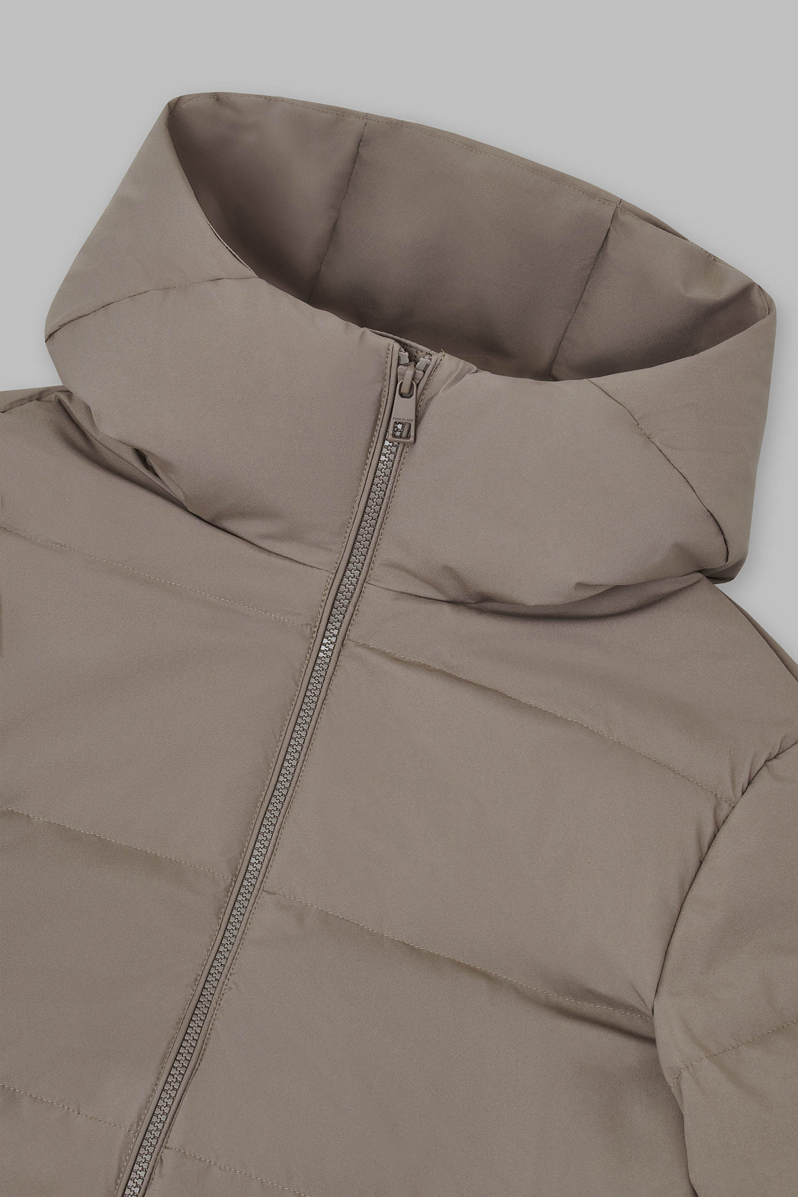 Пуховик с поясом приталенного силуэта