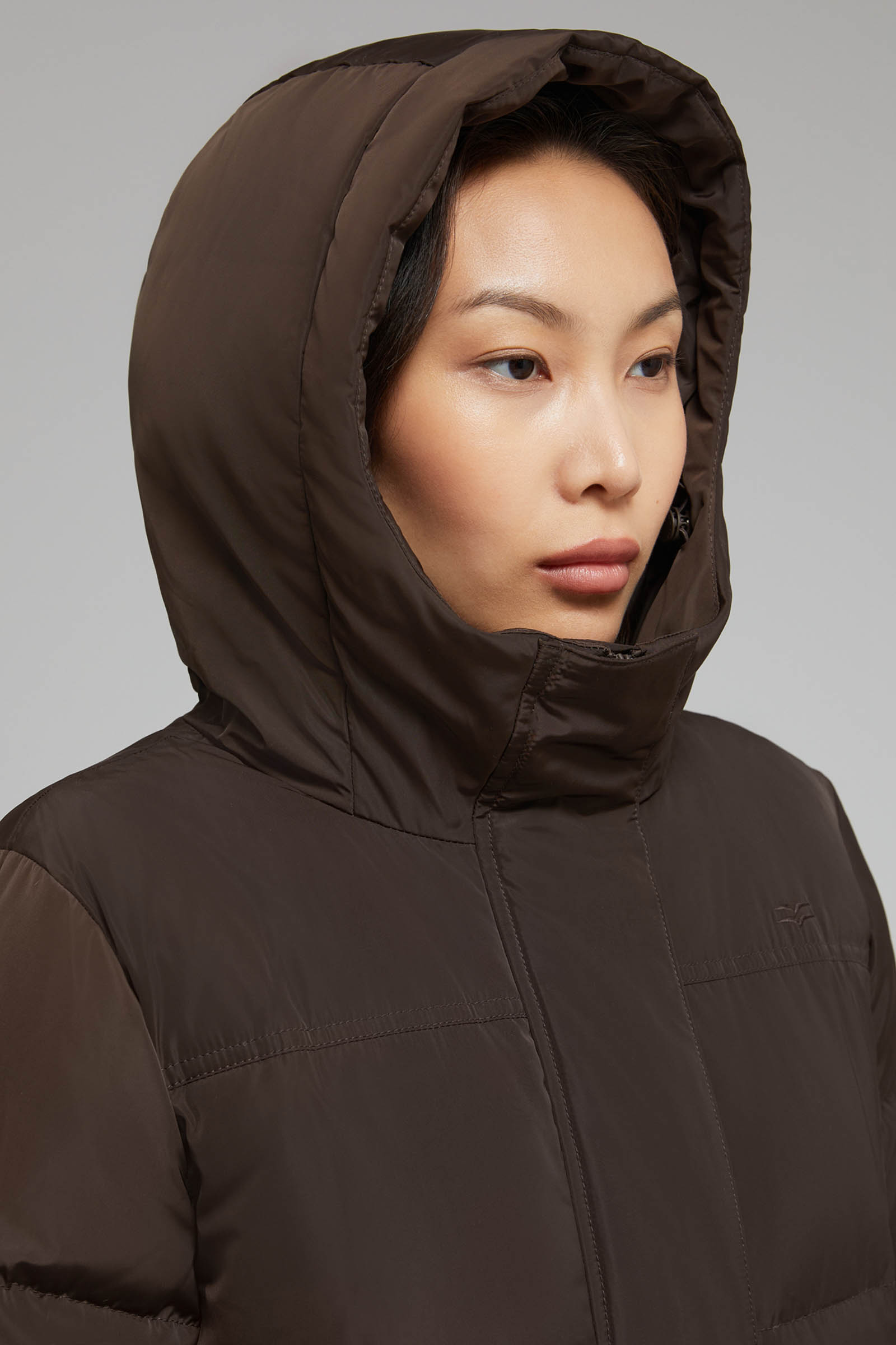 Пуховое полупальто со съемным капюшоном