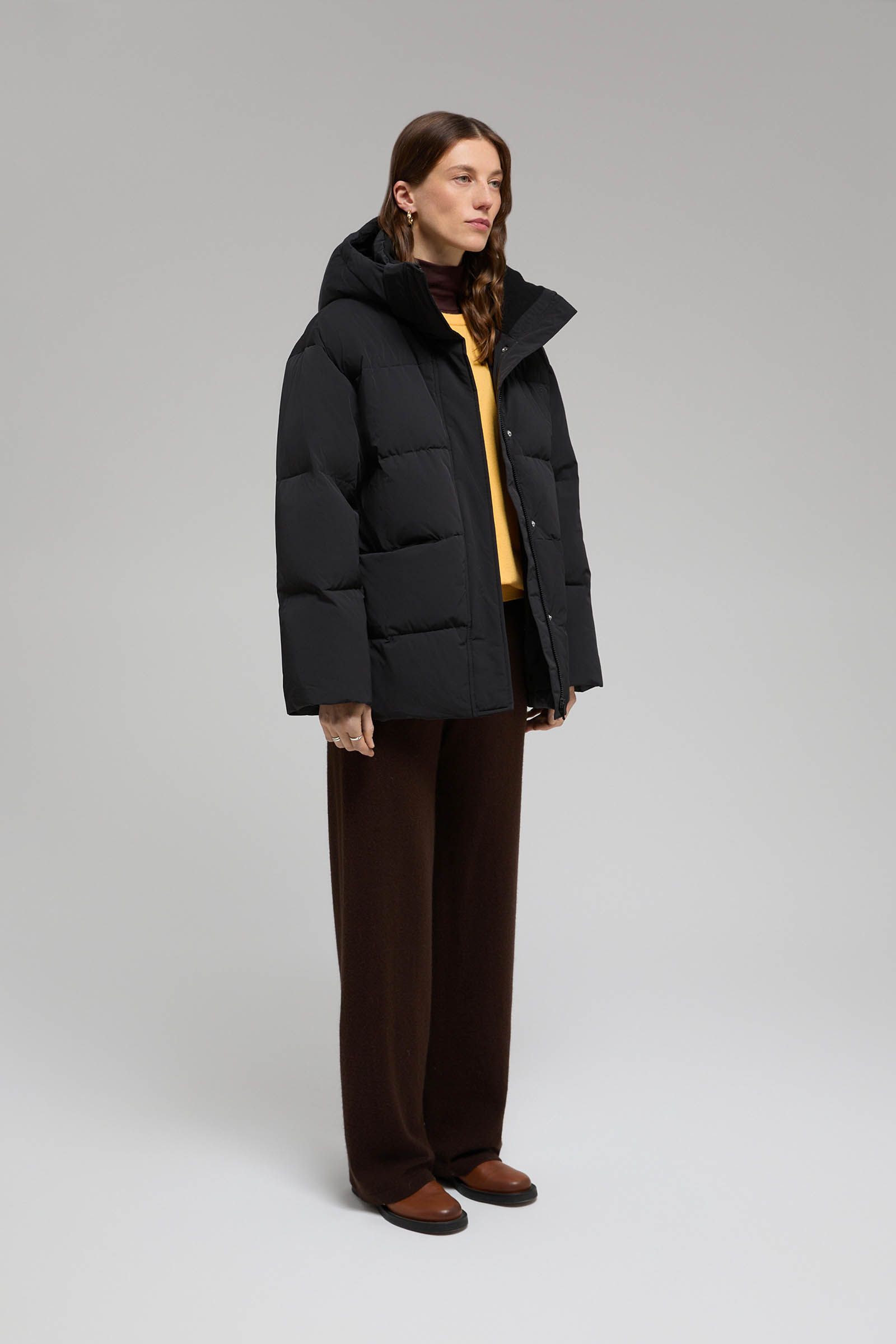 Пуховик с воротником-стойкой и съемным капюшоном