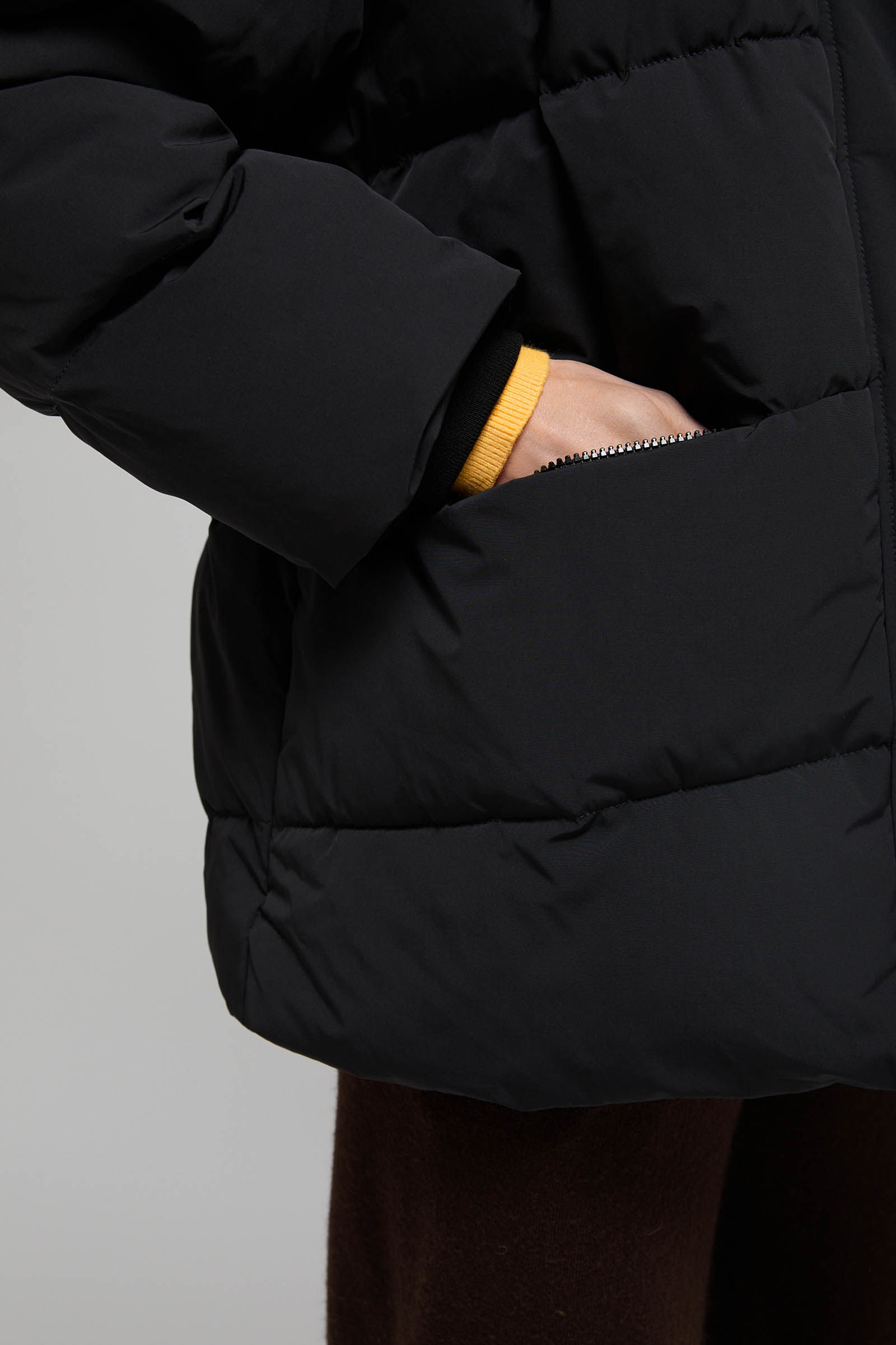 Пуховик с капюшоном и воротником-стойкой