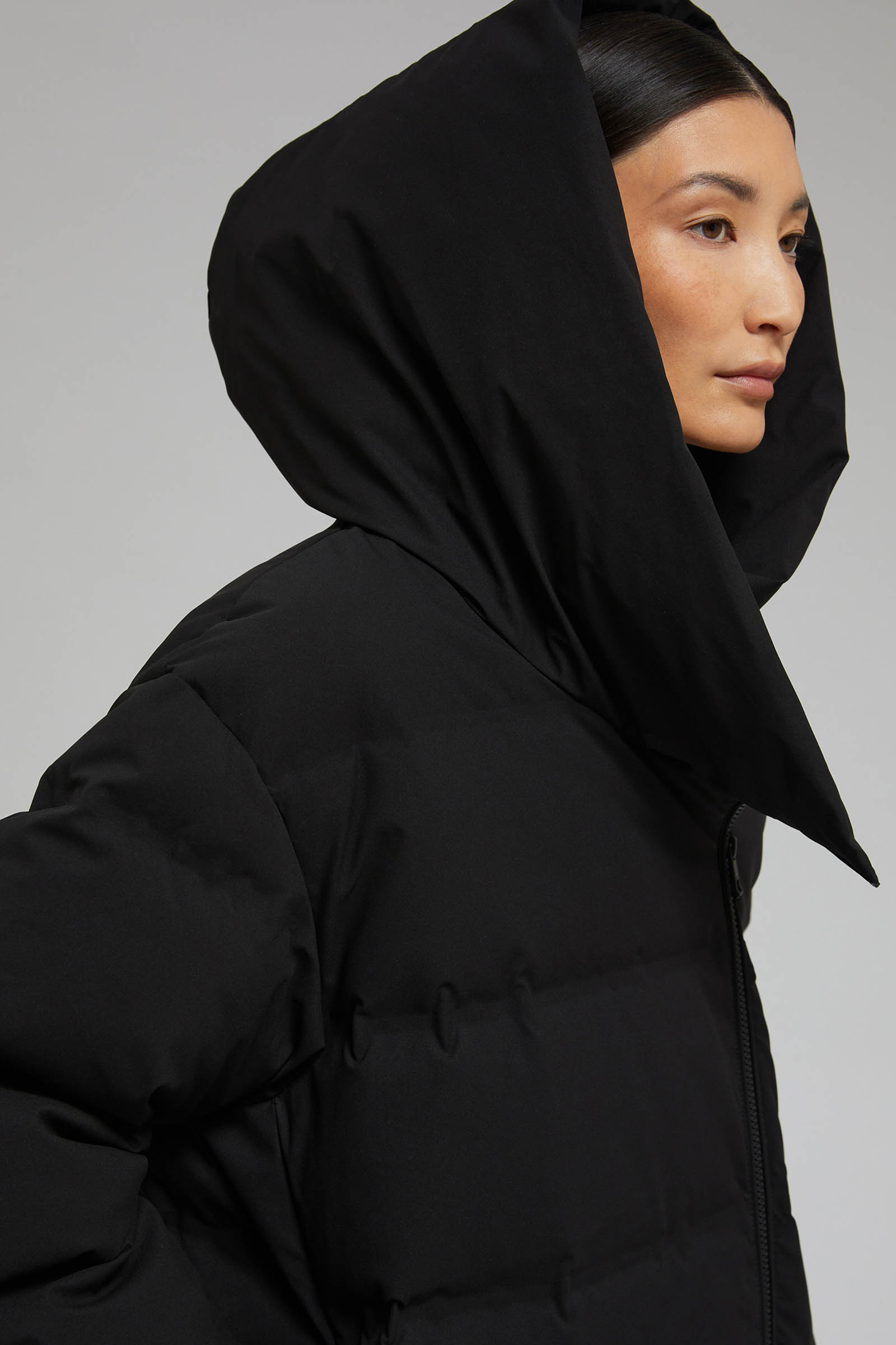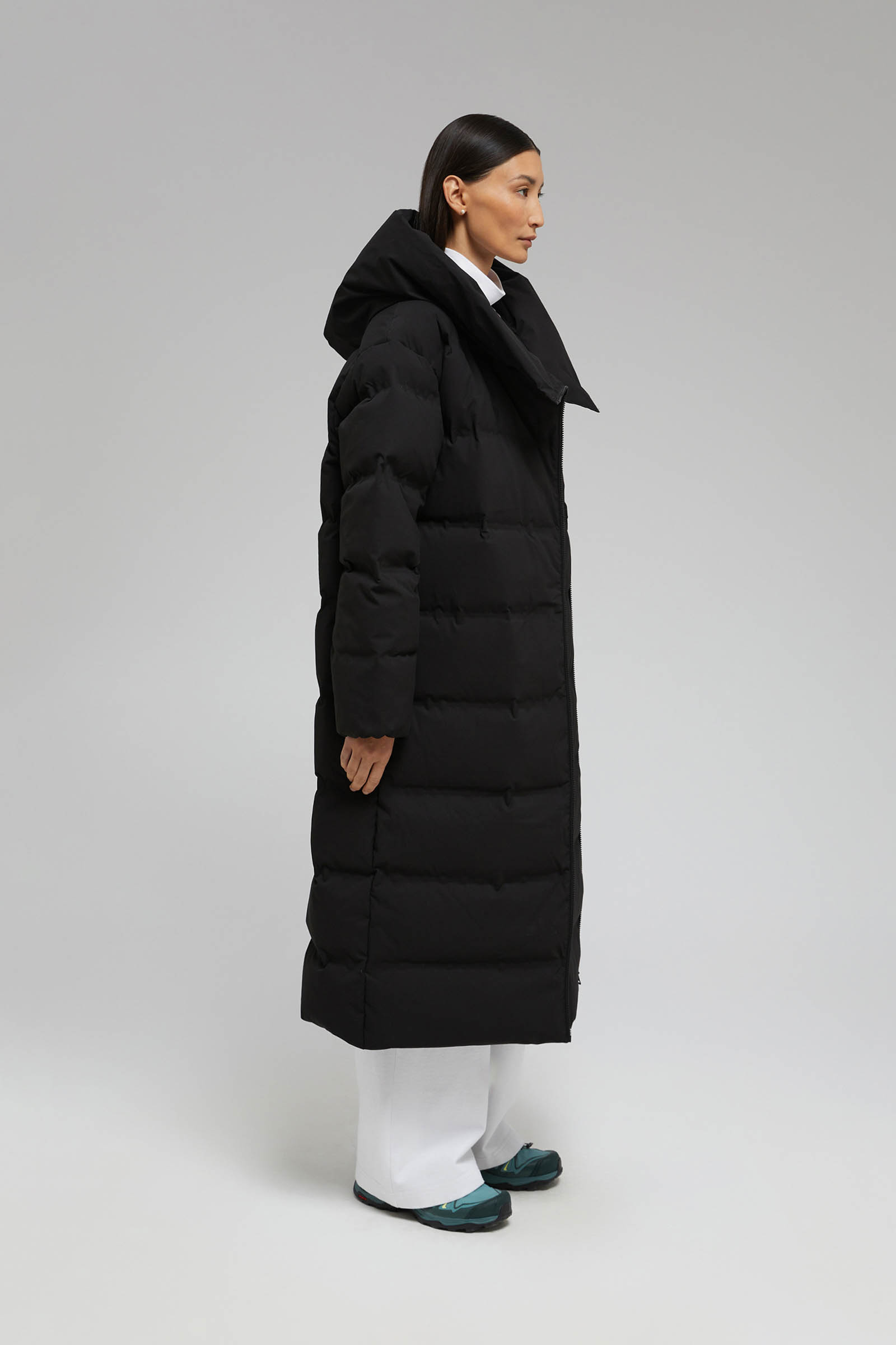 Удлиненный пуховик с натуральным пухом и термостежкой