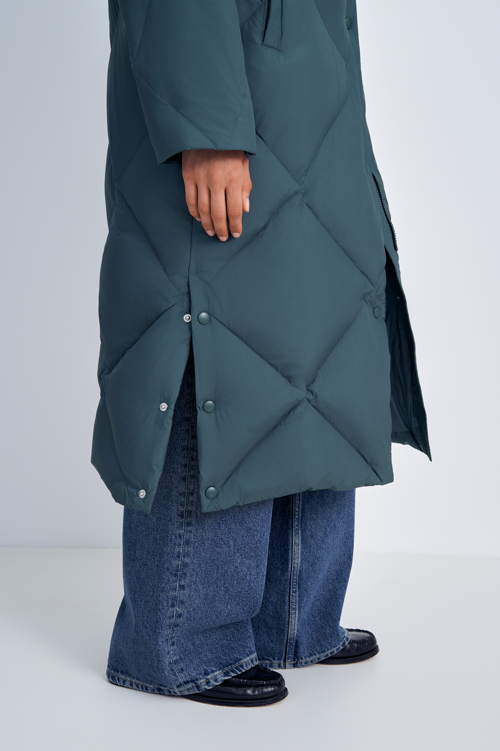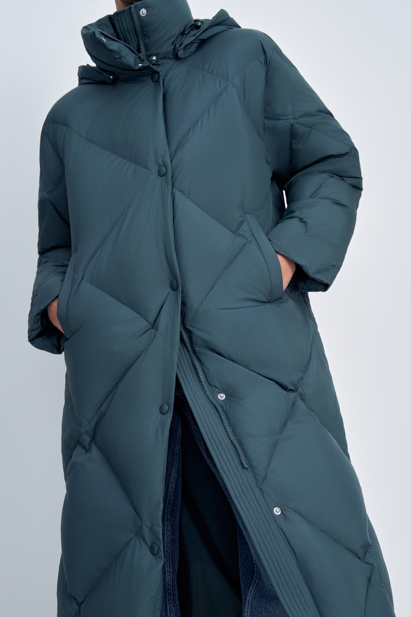 Удлиненный пуховик с натуральным пухом