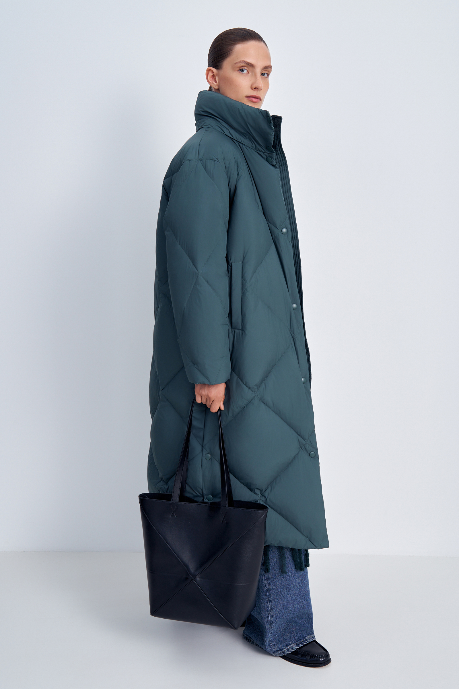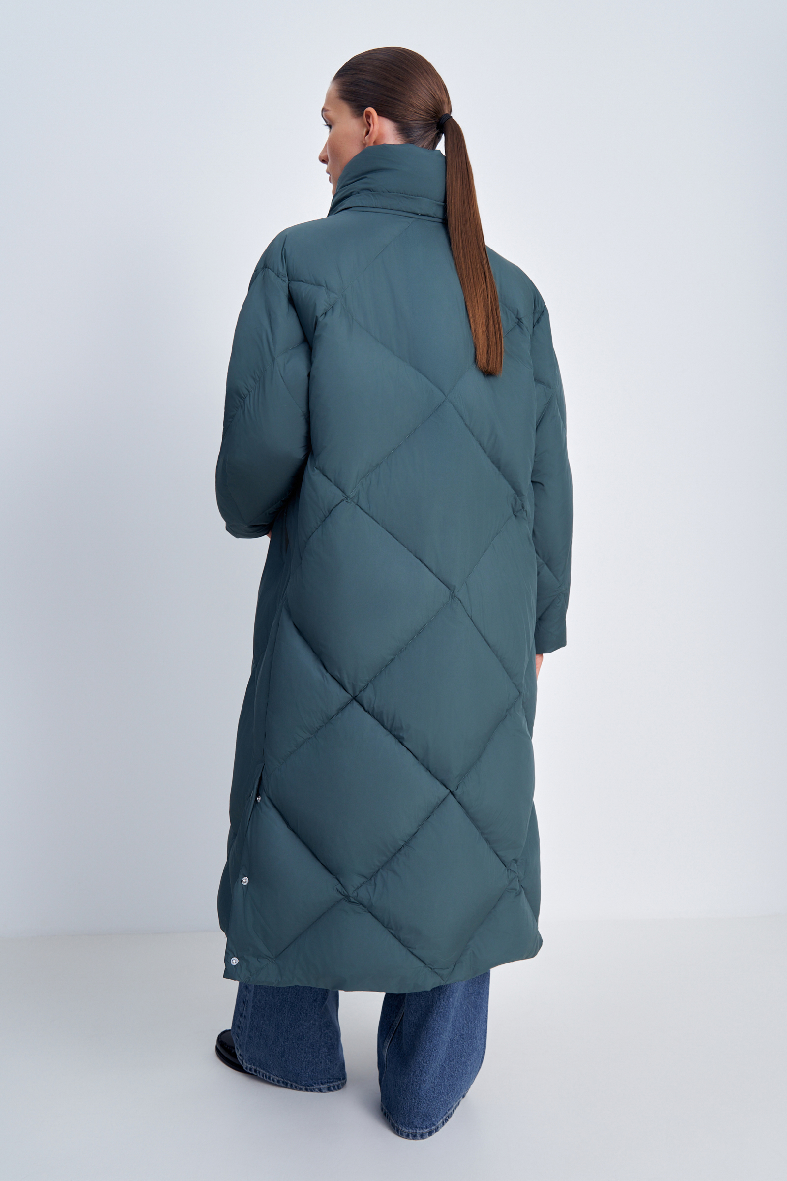 Пуховое пальто с воротником-стойкой