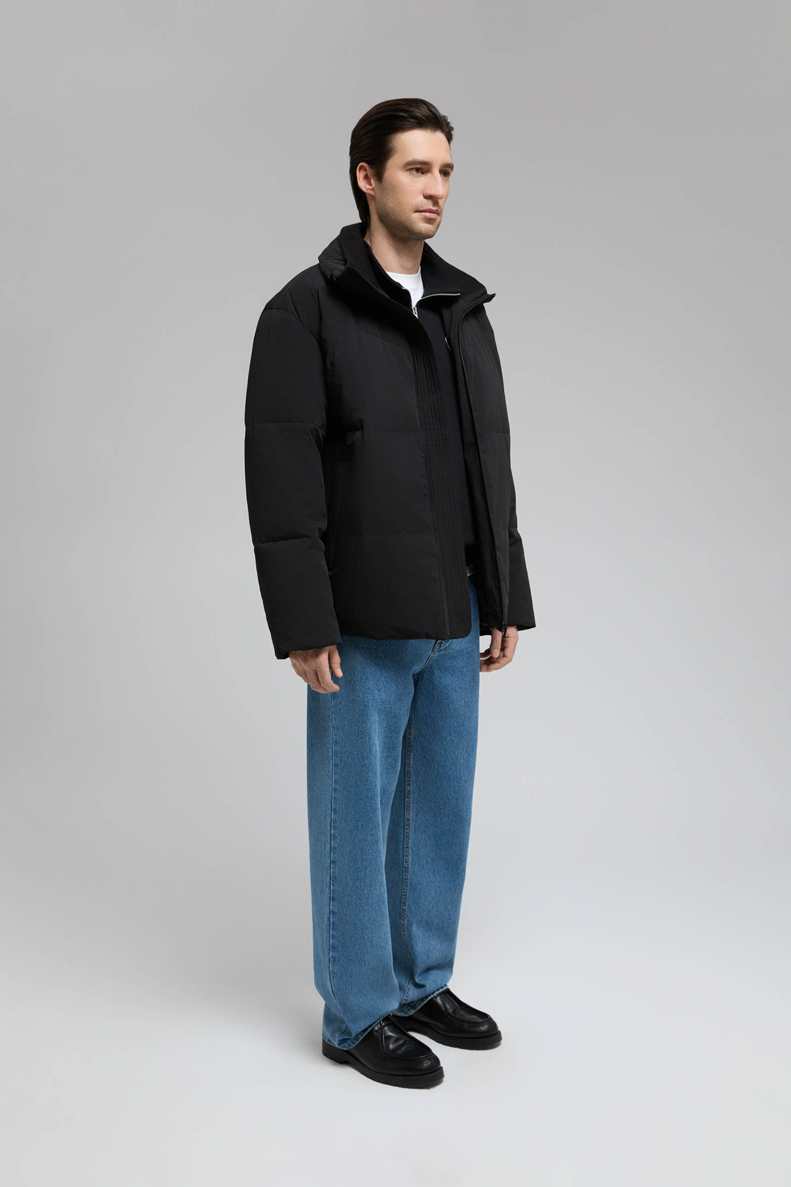 Оверсайз пуховик с воротником-стойкой