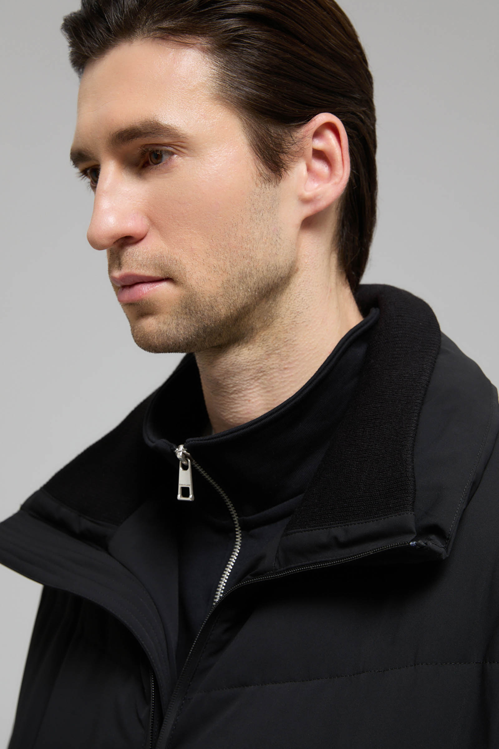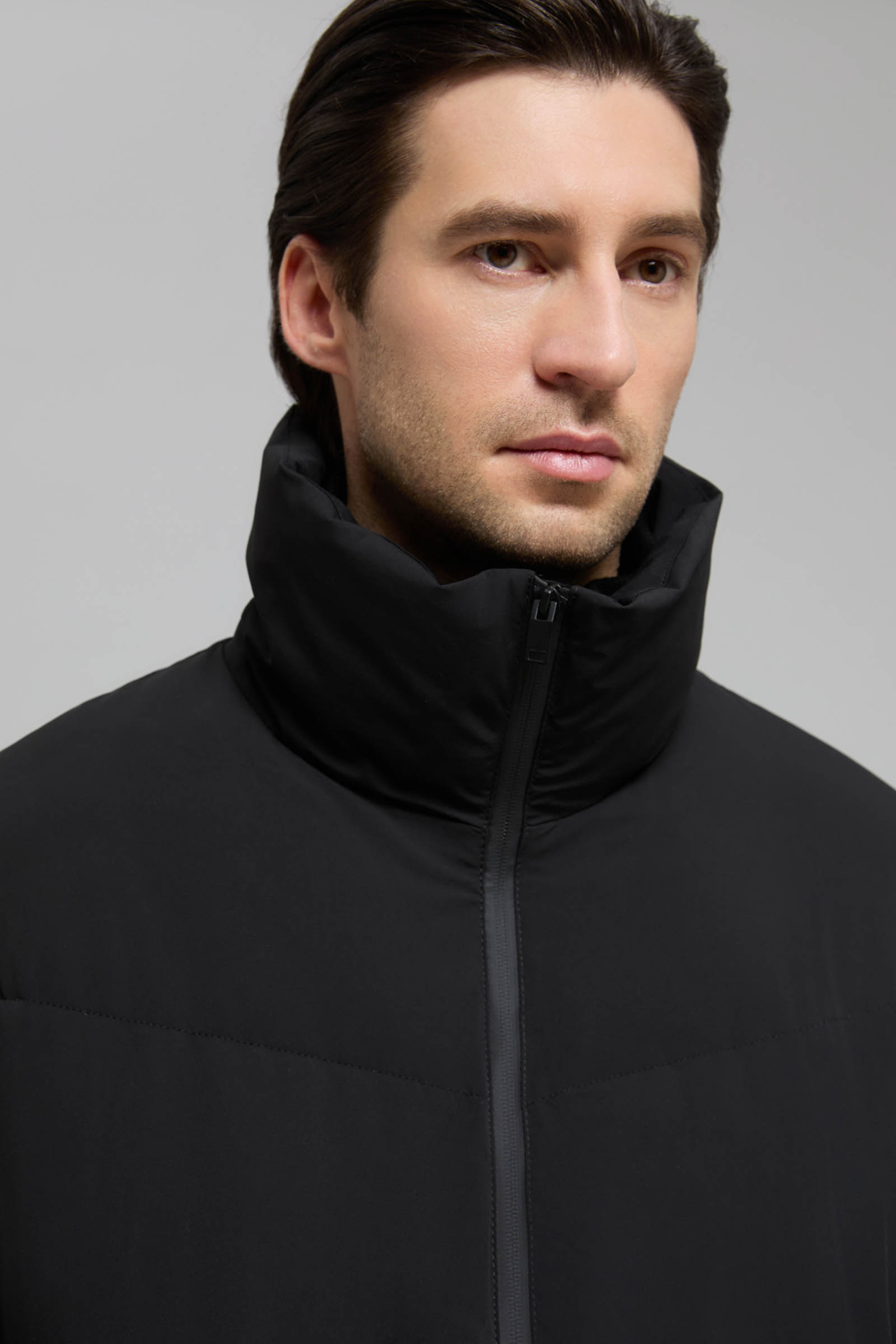 Стеганый пуховик с воротником-стойкой