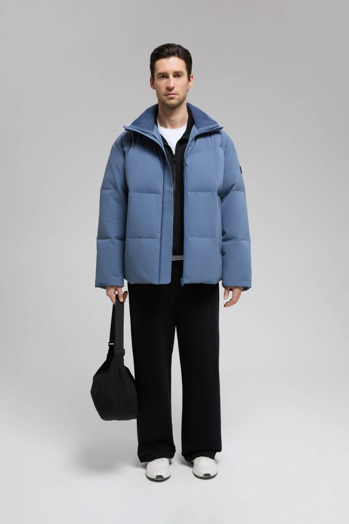 Оверсайз пуховик с воротником-стойкой