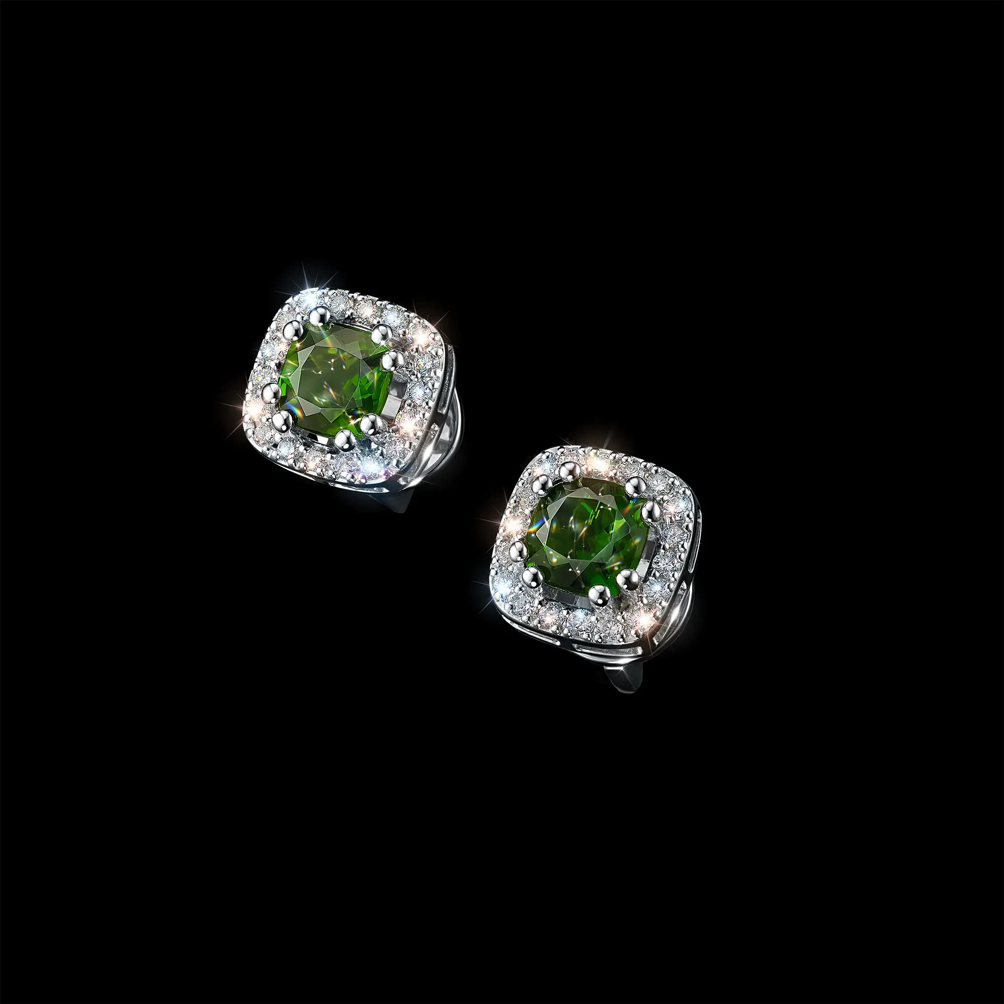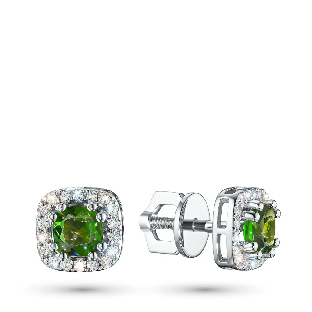 Пусеты из белого золота с хромдиопсидами э4754пс04220417