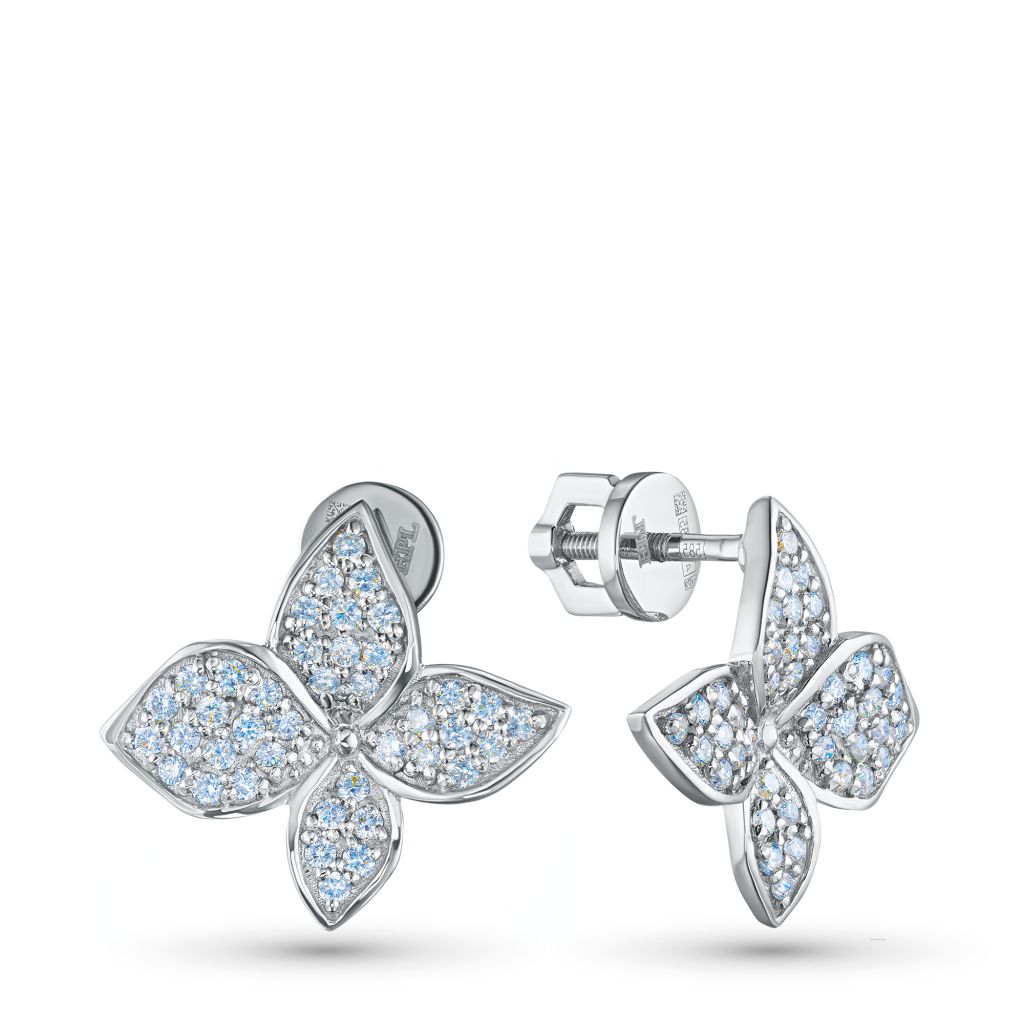 Пусеты из белого золота с хромдиопсидами э4754пс02220415