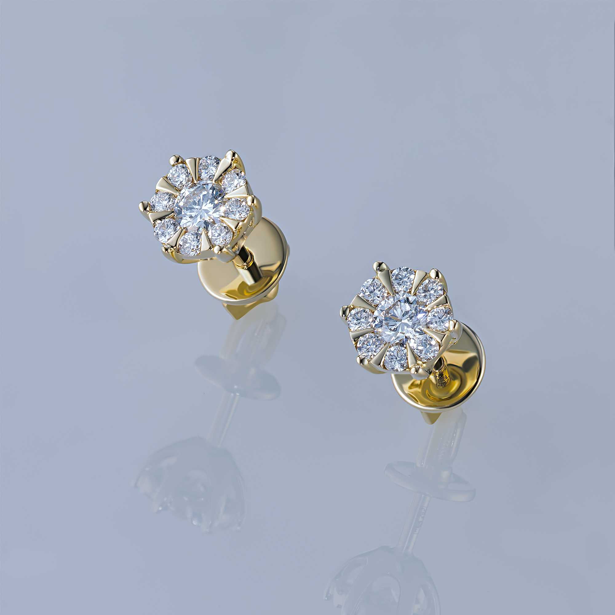 Пусеты из желтого золота с бриллиантами э0301пс08210874