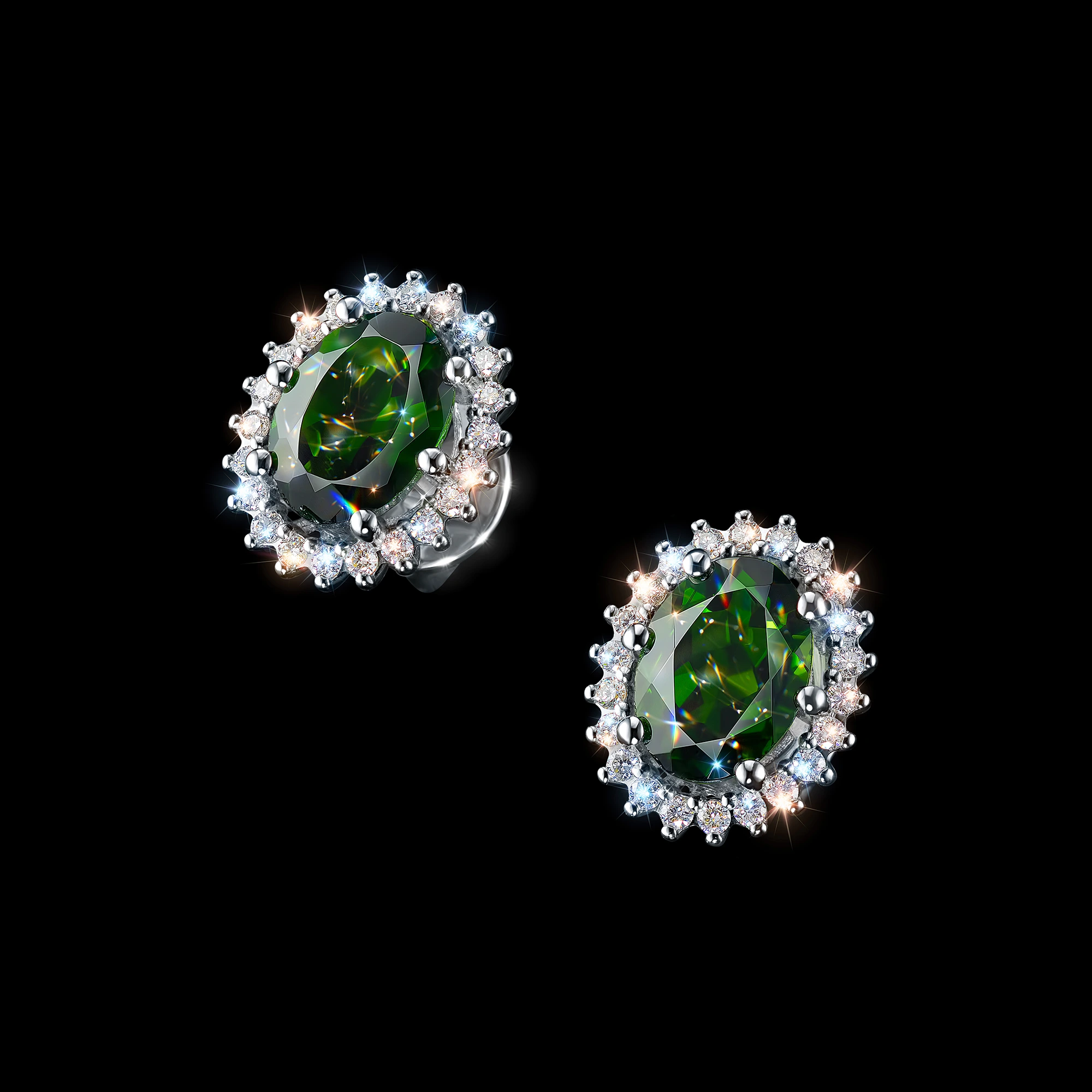 Пусеты из белого золота с хромдиопсидами э4754пс04220417