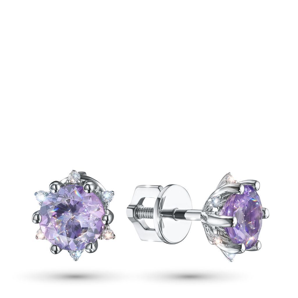 Пусеты из белого золота с танзанитами и бриллиантами э4742пс12200412
