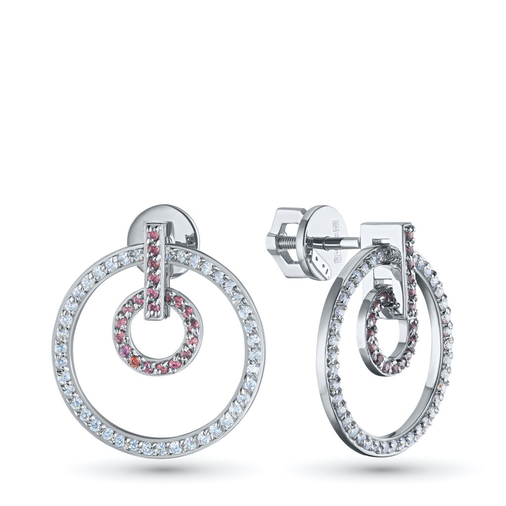 Пусеты из белого золота с бриллиантами и гранатами э4006пс07240370