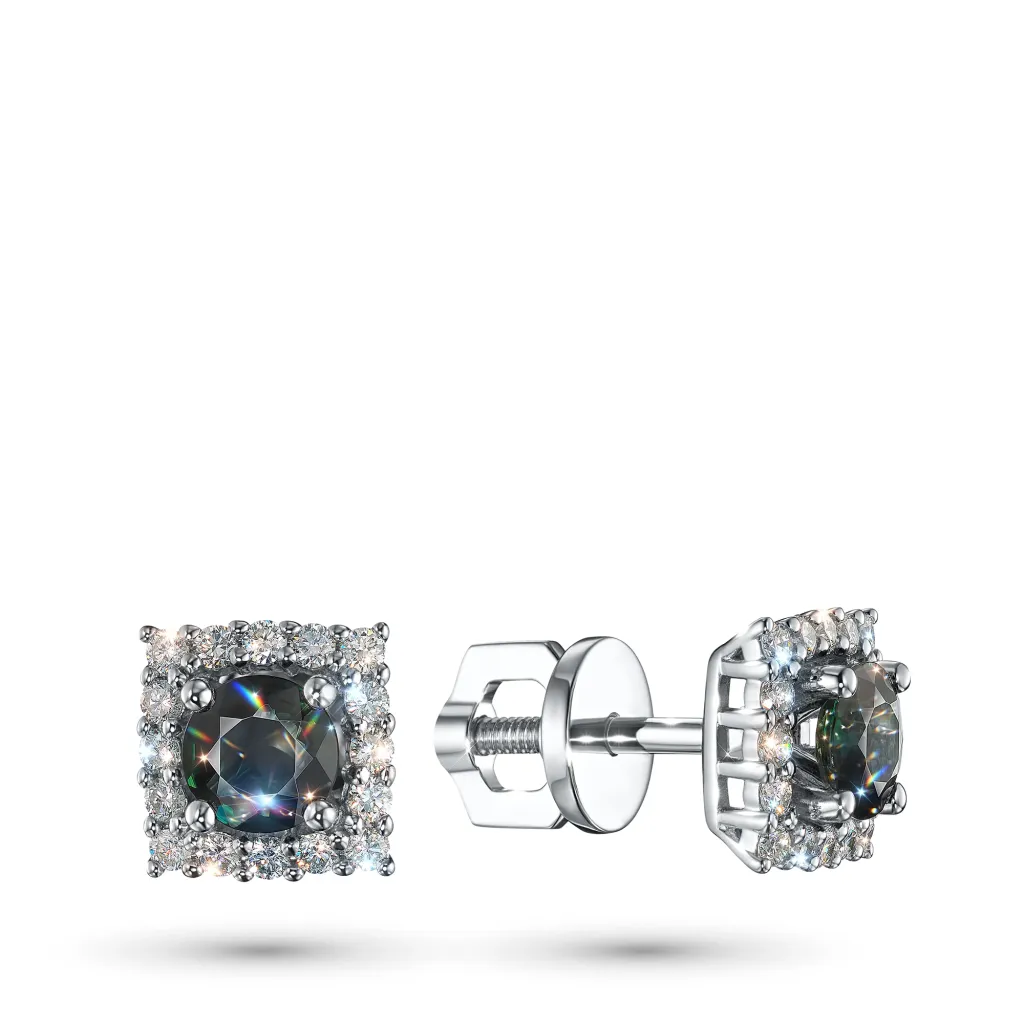 Пусеты из белого золота с сапфирами и бриллиантами э4737пс06220418