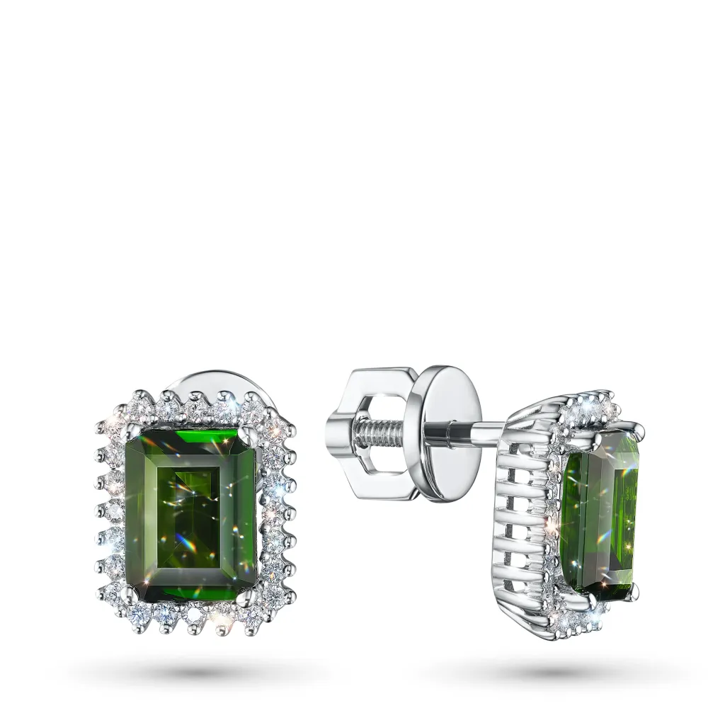 Пусеты из белого золота с хромдиопсидами э4754пс10200418