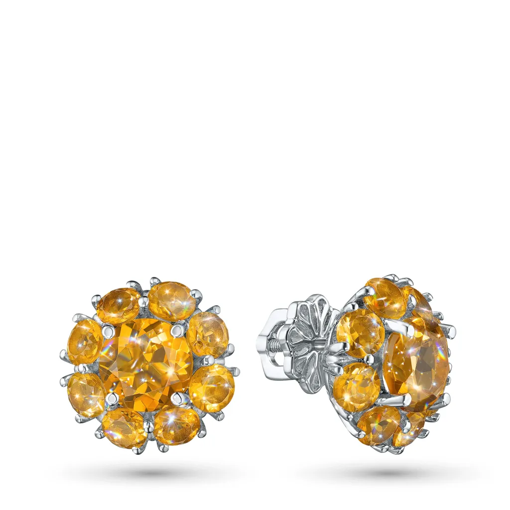 Пусеты из серебра с цитринами э0620пс01260377