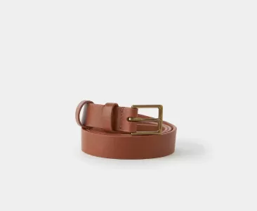 Ремень средней ширины выполнен из натуральной кожи с естественной фактурой и дополнен квадратной пряжкой в винтажном стиле с эффектом состаренного золота. Ремень представлен в черном, бордовом и ореховом оттенках. Классическая форма пряжки и правильная ширина делают эту модель идеальной парой для любимых джинсов и брюк. Ширина ремня: 23 мм.