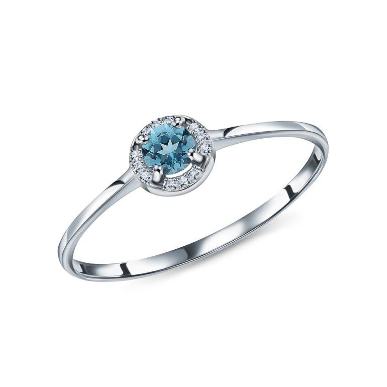 Кольцо с 12 бриллиантами природными, 0.029 карат, огранка круг 17 граней, цвет 2, чистота 2, тип огранки А; 1 топазом свисс природным, 0.311 карат, тип огранки В; Белое золото 585 пробы.