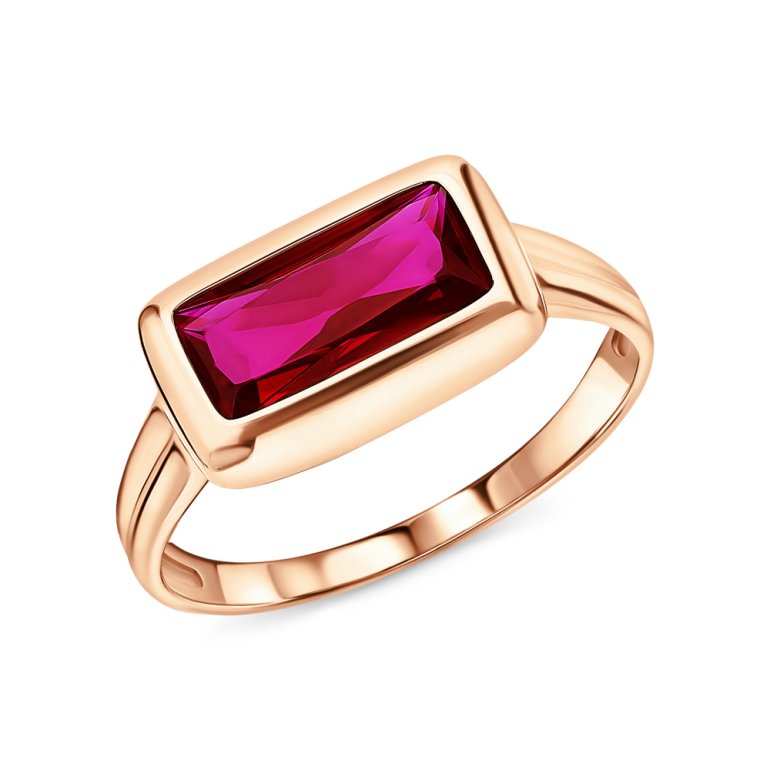 Кольцо с 1 рубином синтетическим, 1.897 карат, тип огранки Б; Розовое золото 585 пробы.