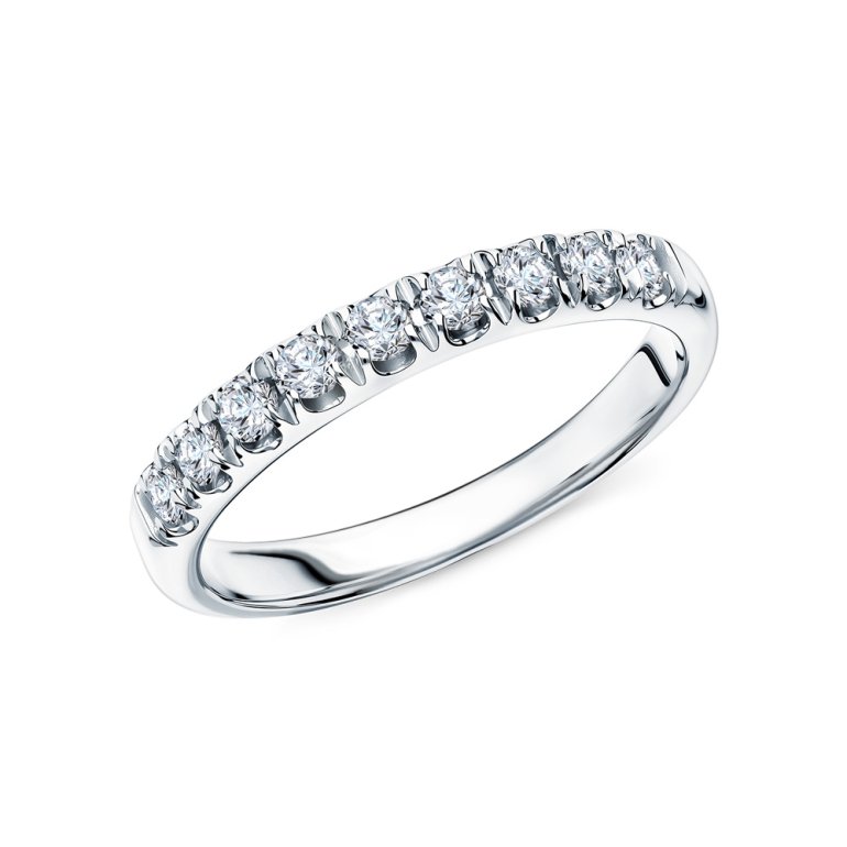Кольцо с 9 бриллиантами природными, 0.395 карат, огранка круг 57 граней, цвет 4, чистота 6, тип огранки А; Белое золото 585 пробы.