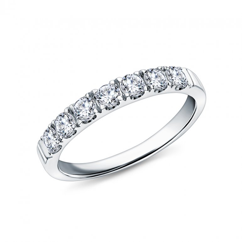 Кольцо с 7 бриллиантами выращенными, 0.772 карат, огранка круг 57 граней, цвет 2, чистота 4, тип огранки А; Белое золото 585 пробы.