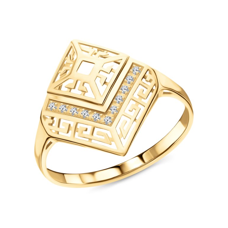 Кольцо, вставка: фианитом бесцветным; Желтое золото 585 пробы.