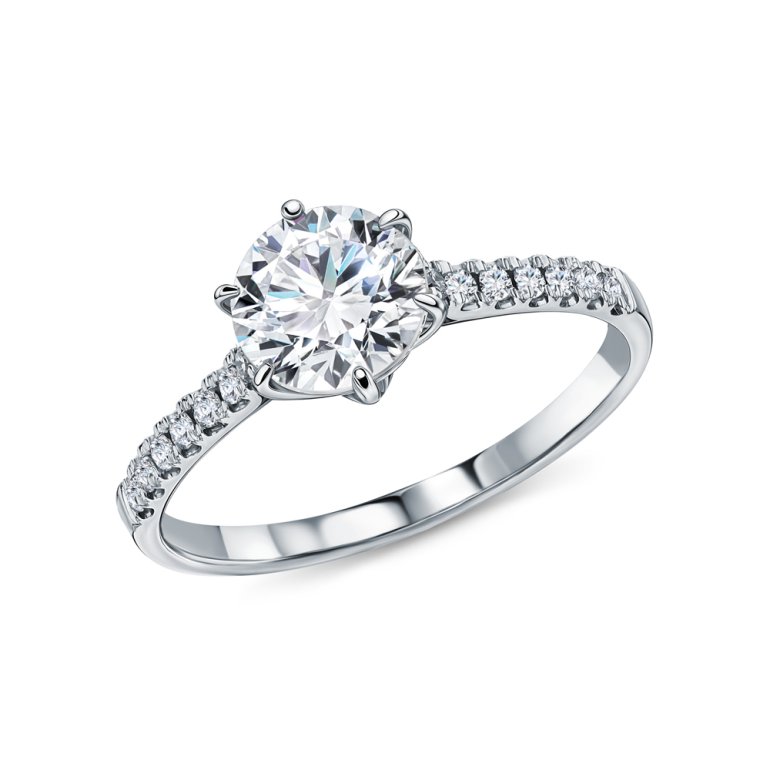 Кольцо с 1 бриллиантом выращенным, 1.58 карат, огранка круг 57 граней, цвет 4, чистота 5, тип огранки А; 6 бриллиантами выращенными, 0.089 карат, огранка круг 57 граней, цвет 3, чистота 4, тип огранки А; 10 бриллиантами выращенными, 0.131 карат, огранка круг 57 граней, цвет 2, чистота 4, тип огранки А; Белое золото 585 пробы.
