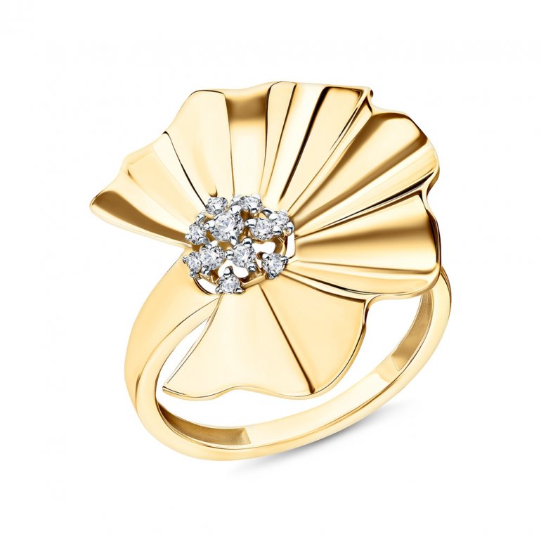 Кольцо, вставка: фианитом бесцветным; Желтое золото 585 пробы.