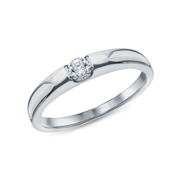 Кольцо с 1 бриллиантом природным, 0.138 карат, огранка круг 57 граней, цвет 3, чистота 6, тип огранки А; Белое золото 585 пробы.