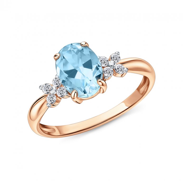 Кольцо с 1 топазом, 1.36 карат, тип огранки Б; фианит; Розовое золото 585 пробы.