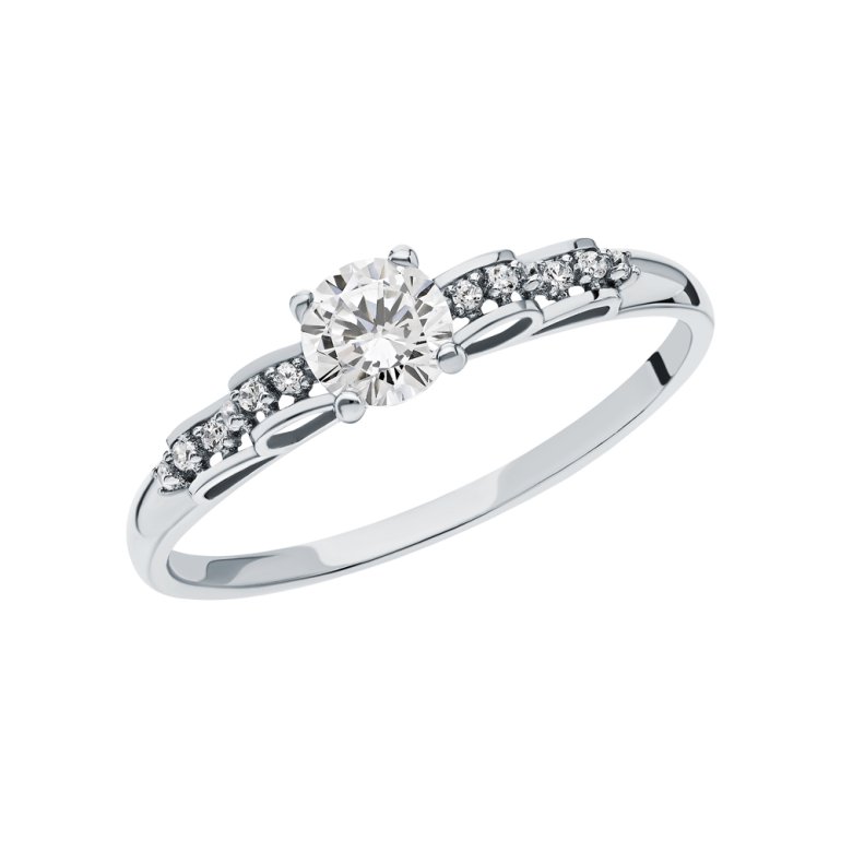 Кольцо, вставка: фианит; Белое золото 585 пробы.