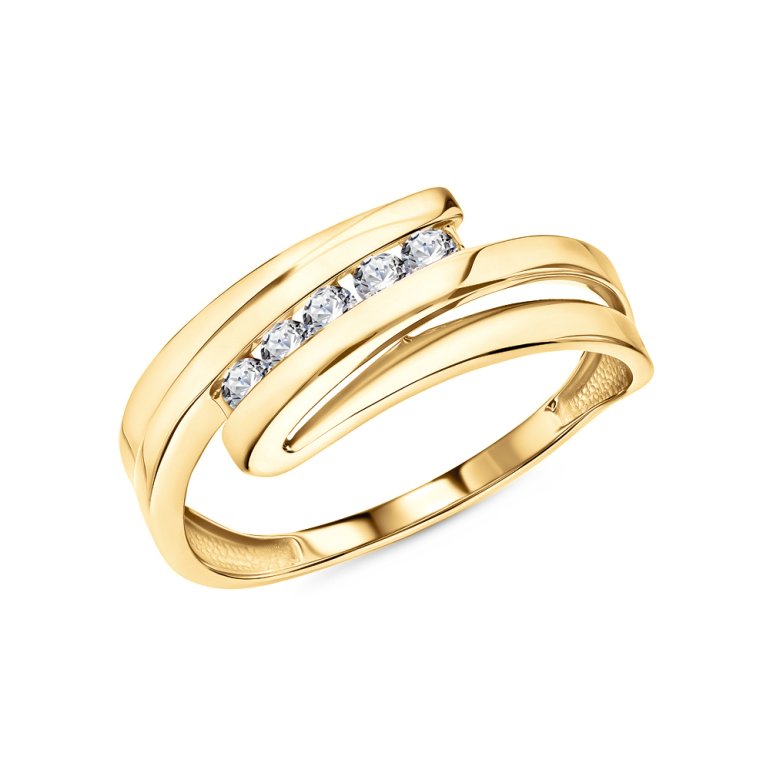 Кольцо, вставка: фианит бесцветный; Желтое золото 585 пробы.