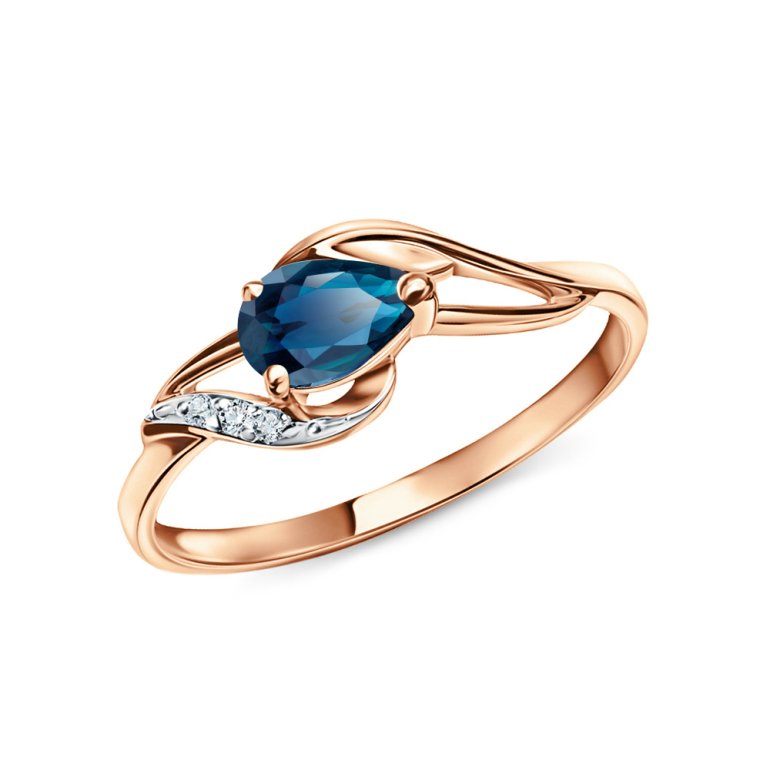 Кольцо с 1 топазом лондон природным, 0.457 карат, тип огранки Б; 3 бриллиантами, 0.026 карат, огранка круг 17 граней, цвет 2, чистота 2, тип огранки Б; Розовое золото 585 пробы.