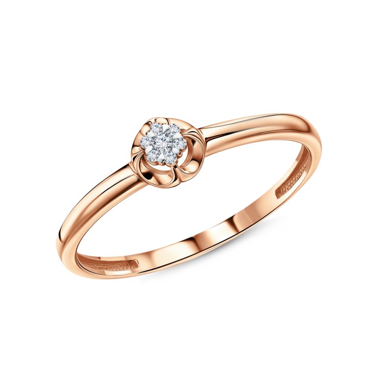 Кольцо с 1 бриллиантом природным, 0.013 карат, огранка круг 57 граней, цвет 4, чистота 5, тип огранки А; 6 бриллиантами природными, 0.026 карат, огранка круг 57 граней, цвет 4, чистота 5, тип огранки А; Розовое золото 585 пробы.