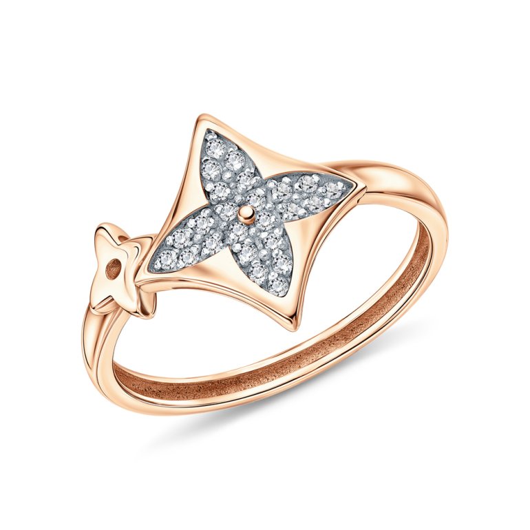 Кольцо, вставка: фианитом бесцветным; Розовое золото 375 пробы.