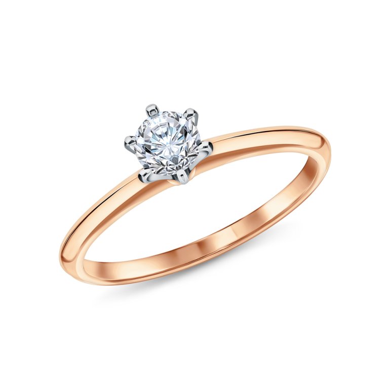 Кольцо с 1 бриллиантом природным, 0.314 карат, огранка круг 57 граней, цвет 3, чистота 6, тип огранки А; Розовое и белое золото 585 пробы.