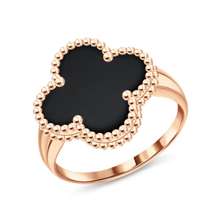 Кольцо с 1 агатом черным природным, тип огранки Б; Розовое золото 585 пробы.
