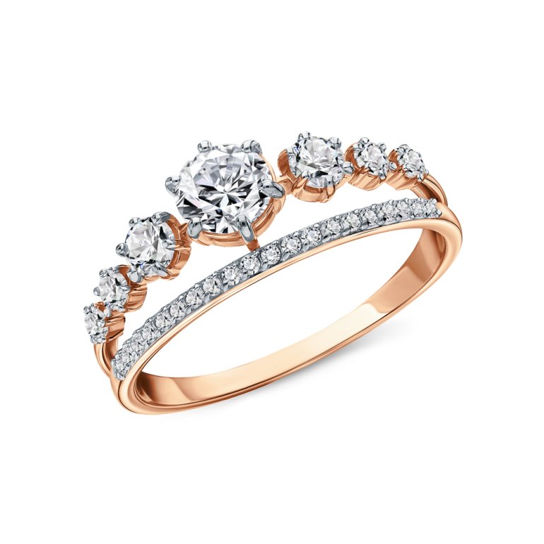 Кольцо, вставка: фианитом бесцветным; Розовое золото 585 пробы.