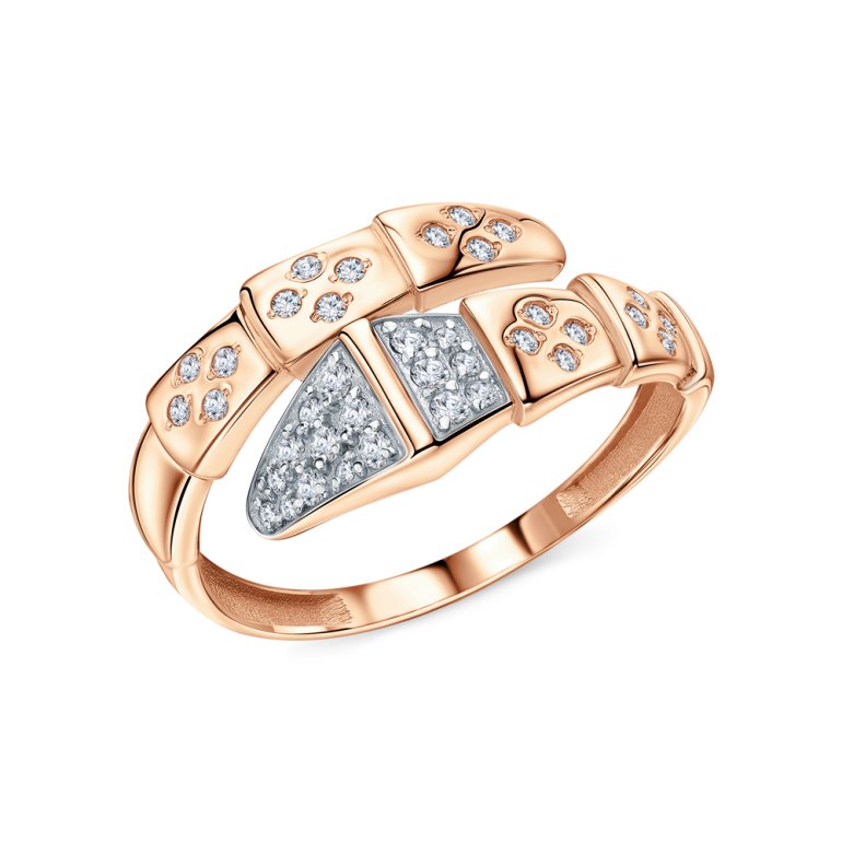 Кольцо, вставка: фианитом бесцветным; Розовое золото 585 пробы.