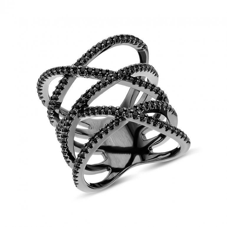 Кольцо, вставка: черным фианитом; Серебро 925 пробы.