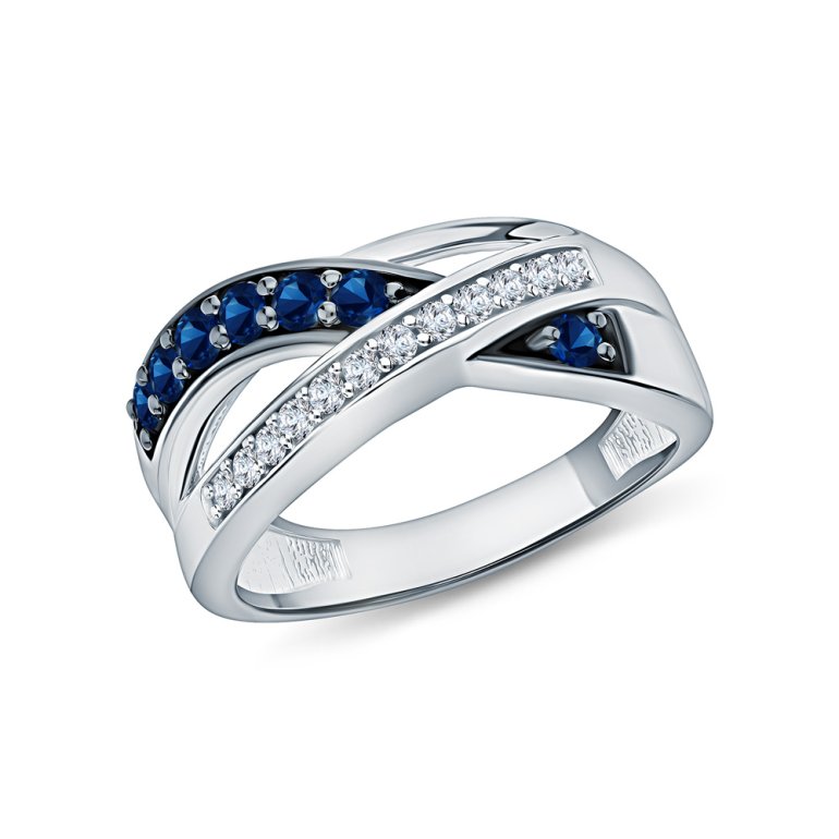Серебряное кольцо с фианитами и сапфирами природными S43133-K9W-01 Кольца SUNLIGHT | V4.Ru: Маркетплейс
