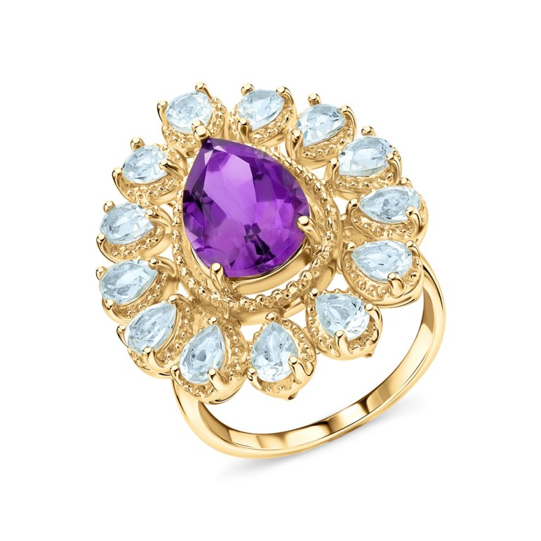 Серебряное кольцо с топазами природными и аметистами природными S43403-K9Y-01 Кольца SUNLIGHT | V4.Ru: Маркетплейс
