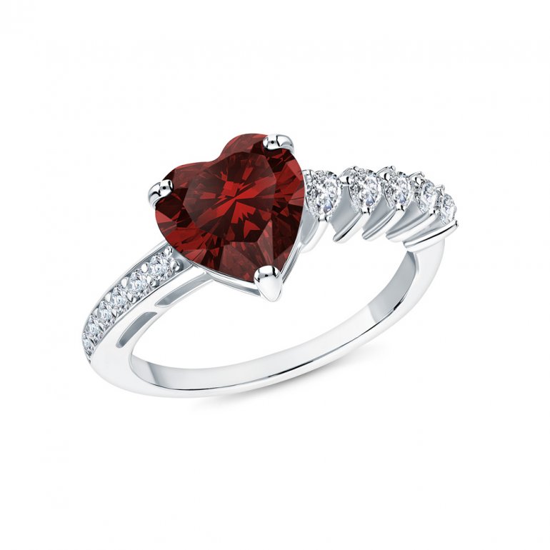 Серебряное кольцо с фианитами и гранатами природными S42628-K9W-01 Кольца SUNLIGHT | V4.Ru: Маркетплейс
