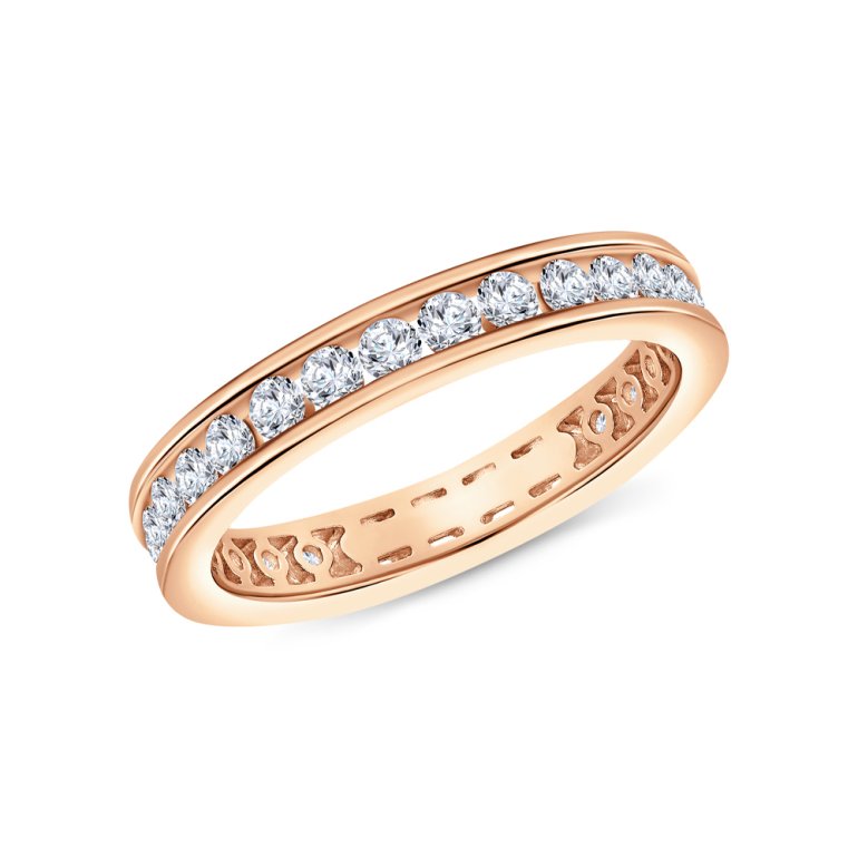 Кольцо с 29 бриллиантами выращенными, 1.055 карат, огранка круг 57 граней, цвет 2, чистота 4, тип огранки А; Розовое золото 585 пробы.