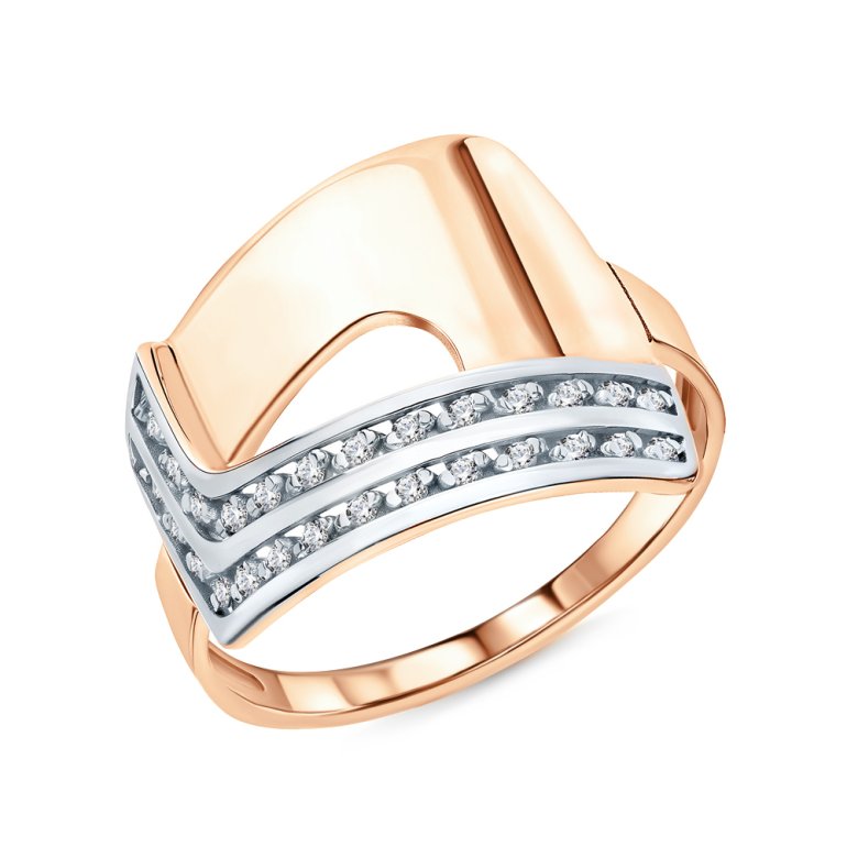 Кольцо, вставка: фианитом бесцветным; Розовое золото 585 пробы.