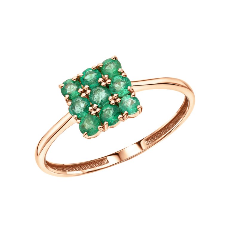 Кольцо с 9 изумрудами природными, 0.499 карат, цвет 3, чистота 3, тип огранки В; Розовое золото 585 пробы.
