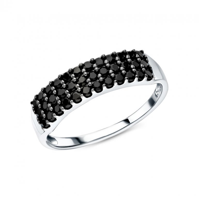 Кольцо, вставка: черным фианитом; Серебро 925 пробы.