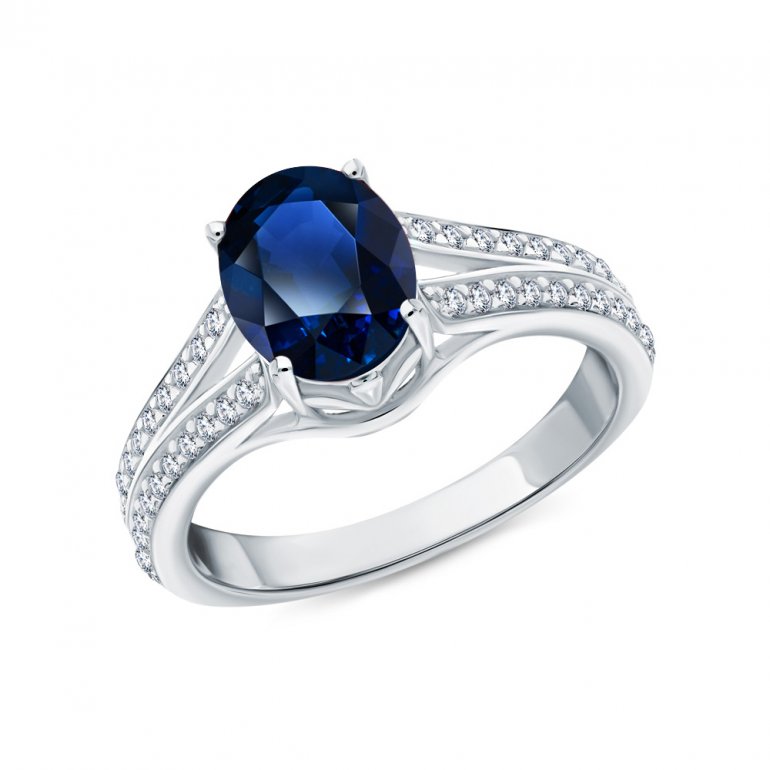 Серебряное кольцо с фианитами и сапфиром природным