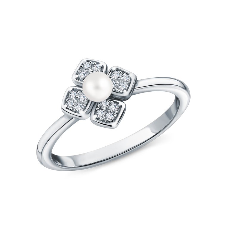 Серебряное кольцо с жемчугом и фианитами S92292-K9W-01 Кольца SUNLIGHT | V4.Ru: Маркетплейс