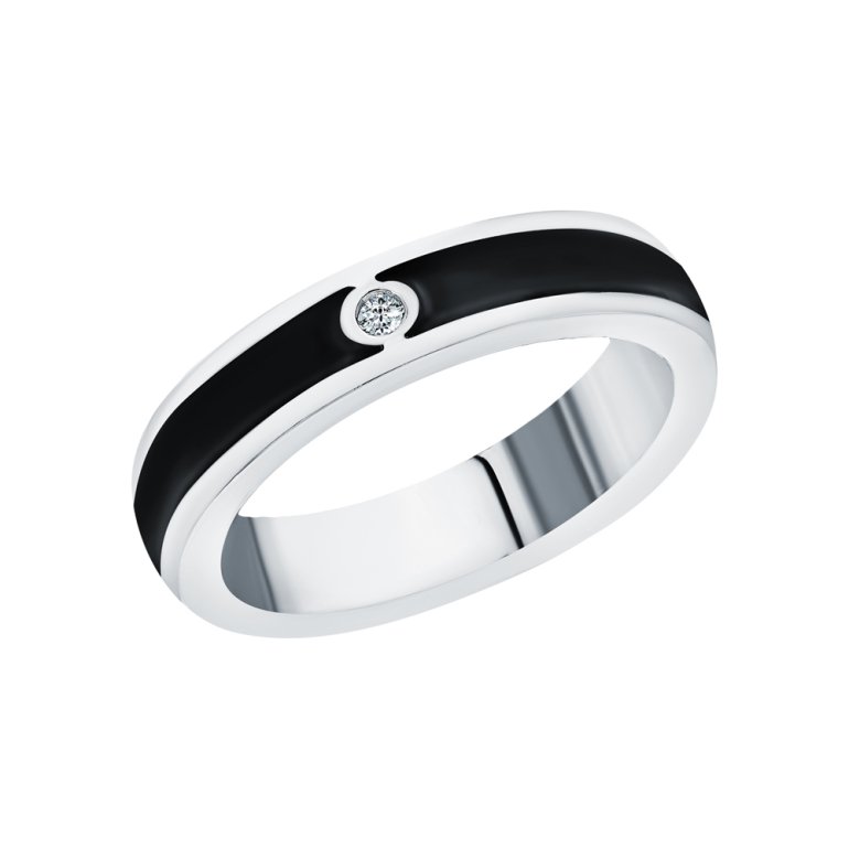 Кольцо, вставка: эмаль черная;  фианитом бесцветным; Серебро 925 пробы.